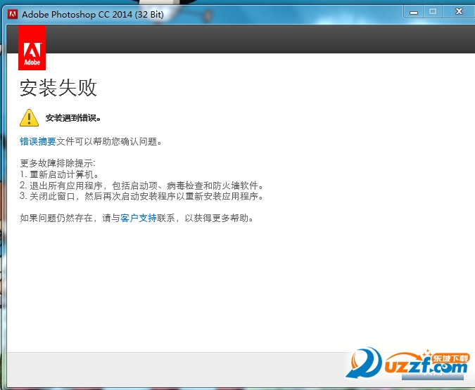 如图:估计很多人都遇到了这种问题,进度条只读了一点点,然后就提示安装失败了,什么原因呢?