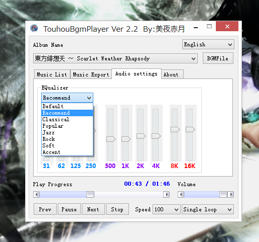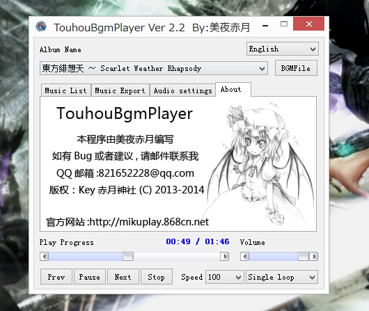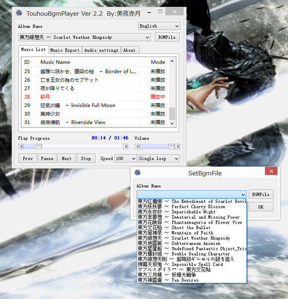 TouhouBgmPlayer播放器是一款东方bgm播放软件,由玩家制作,这款软件绿色免费,简单好用,喜欢的网友可以来东坡下载!