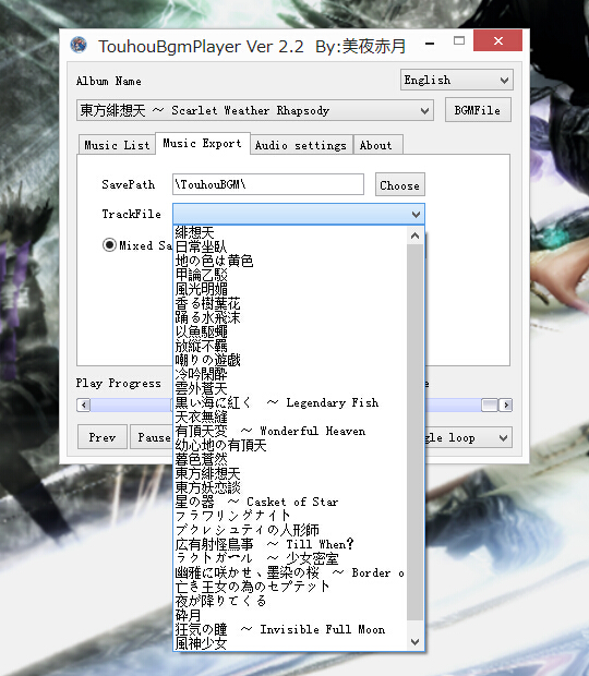 TouhouBgmPlayer播放器是东方fans级玩家自制的音乐播放器工具,使用后可以播放游戏自带的BGM,可以将BGM添加到播放列表里顺序播放哦。