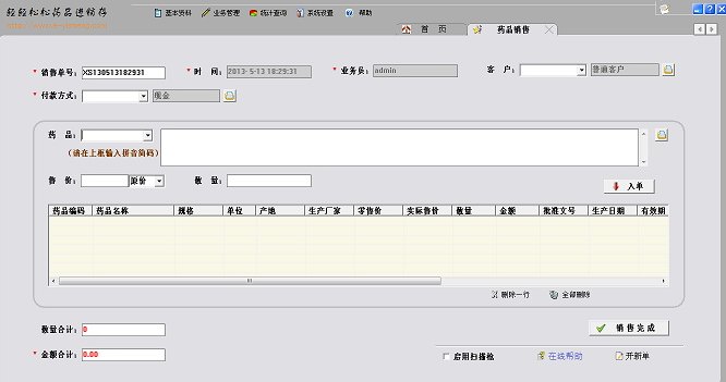 1、基础信息管理,包括:业务员管理、药品类别管理、供货商管理、付款方式管理、药品用法管理、生产厂家管理、会员管理、药品剂型管理、药品资料管理;