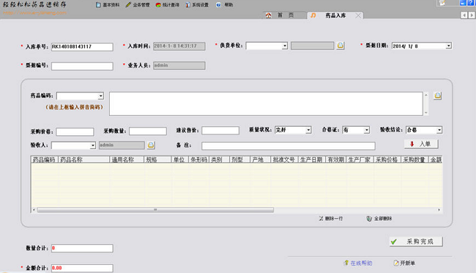 2、药品采购管理,包括:药品入库、药品出库、入库查询、出库查询;