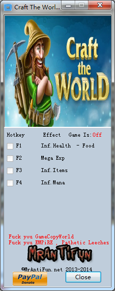 《打造世界》五项修改器,更新支持最新1.1.010版本游戏,MrAntiFun制作,具有无限生命,无限食物等功能,使用时先运行游戏,再启动修改器。