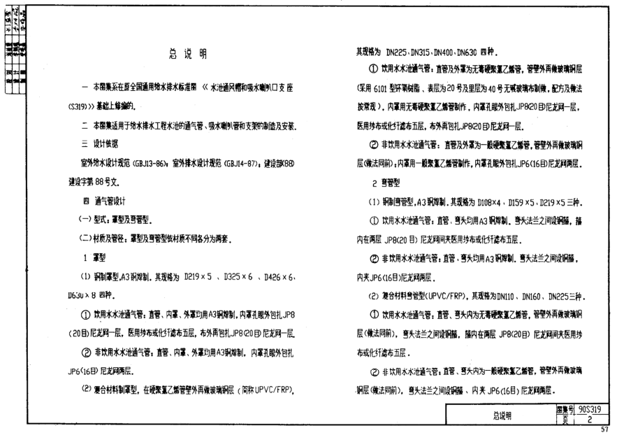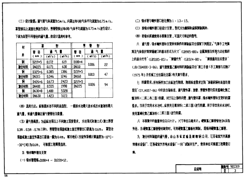 90S319水池附件图集,一般被简称为90s319图集,该图集是一份适用于给水排水工程池的通气管、吸水喇叭管和支架的制造及安装的参考图集,本节内容东坡小编为大家整理带来的这份90s319图集为pdf格式清晰电子版,如果你需要这份90S319水池附件图集的话,点击本文相应的下载地址进行下载即可!