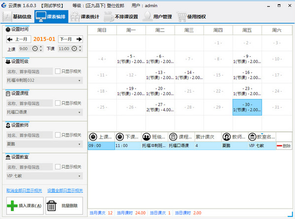 一键插入新课,班级最新课表一秒即得,每月教师课时统计一秒即得,软件图标设计和音效高端大气上档次,极大减轻排课工作量同时极大提升排课愉悦感