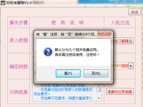 ①注册前和所有的错误设置都默认分成9个班级,并免费试用和使用。