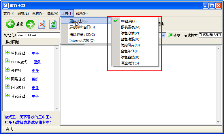 绿色网络游戏平台,游戏王IE收录了十几万款游戏,包括网络游戏、网页游戏、单机游戏、FLASH游戏、手机游戏、PSP游戏、掌机游戏等,集天下游戏于一身的王中王,东坡推荐有需要的来下载试试。