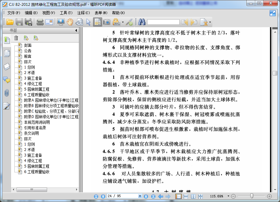 园林绿化工程施工及验收规范CJJ82-2012目录