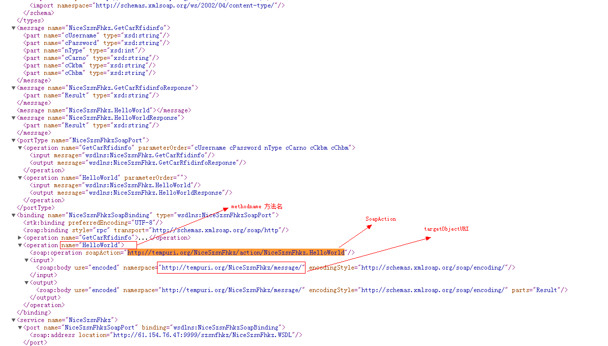 SOAP绑定(binding),它定义了SOAP使用哪种协议交换信息。使用HTTP/TCP/UDP协议都可以。