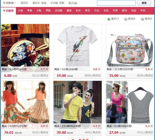 1、 汇聚淘宝网正在进行限时打折活动中的宝贝。有折扣幅度、打折剩余时间、成交量等信息可供参考。