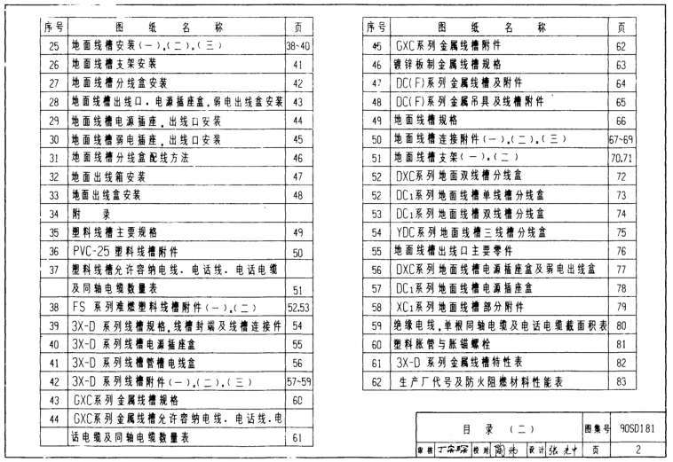 本图集包含塑料线槽,金属线槽和地面线槽的配线安装,适用于正常环境中工业及民用建筑的室内电力照明,电讯及电缆电视系统的配线。