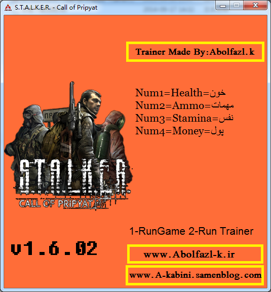 《潜行者:普里皮亚季的召唤》四项修改器,更新支持最新1.6.02版本游戏,Abolfazl.k制作,使用时先运行游戏,再启动修改器。