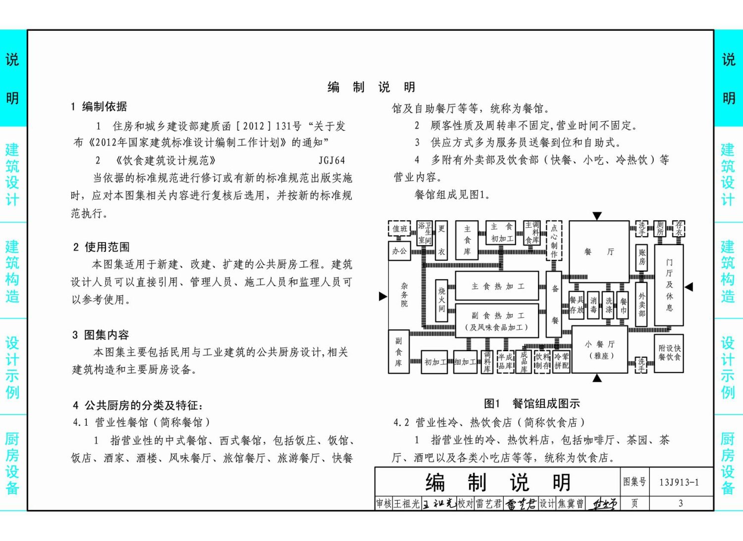 本节内容小编要和大家分享的是国家建筑标准图集之13J913-1公共厨房建筑设计与构造图集(以下简称13j9131图集),13j9131图集是一份适用于新建、改建、扩建的公共厨房工程的参考图集。本节内容东坡小编为大家整理带来的这份13j9131图集为pdf格式免费完整版,内容字迹清晰可见,可供建筑设计人员、管理、施工及监理人员参考使用。如果你需要这份13j9131图集的话,点击本文相应的下载地址进行下载即可!