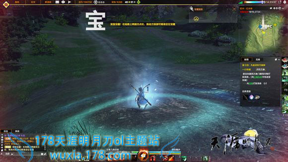 从上面的宝藏区域选择一个,这时候要注意左下角聊天栏的系统提示,如果出现提示XX区域宝藏已被取走,那么果断换位子,不然去了宝藏也给别人拿走了。这时候昆仑玉的作用上场了,选定区域内使用昆仑玉,以内力灌注昆仑玉探查周围,片刻后回收内力即可探知是否存在宝藏。游侠身份技能可无消耗使用一次昆仑玉,CD为一小时。