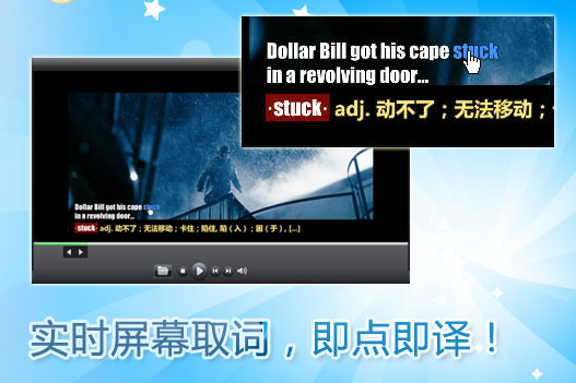 1、在播放器中实现了对正在播放的视频显示的英文字幕进行逐字逐词的中文解释(播放器内嵌魔方词典)。