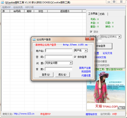 QCookie提取工具,默认游戏COOKIE,支持远程多线打码,自动生在多种COOKIE格式,可手动导出,内置保持在线功能,掉线可自动重登功能等。QCookie提取工具是一款纯辅助工具,有需要的赶紧来东坡下载吧。