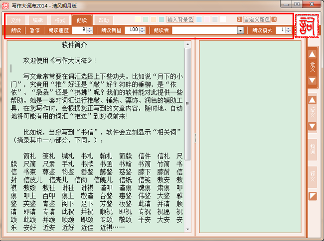 新增一套现代常用汉字构词字典,能方便地查看光标所在汉字的常用构词;