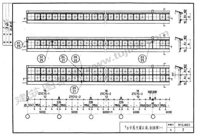 91SJ803中悬钢天窗(1-2/1-4中悬)图集是一份适用于一般工业建筑的图集,该图集一般被简称为91sj803图集。本节内容小编为大家整理带来的是一份pdf格式清晰版由25页组成的91sj803图集,该图集内容完全免费,有需要的朋友快来下载吧!