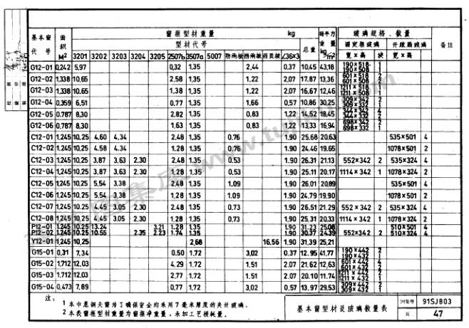 基本窗型材及玻璃数量表47