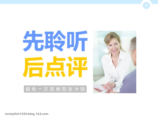 在我们的职场中,管理者对下属的批判要掌握好技巧,批评也是一门艺术,东坡小编分享批评是一门艺术简单清新商务ppt,适合制作管理培类ppt课件等,点击下面的地址即可免费下载。