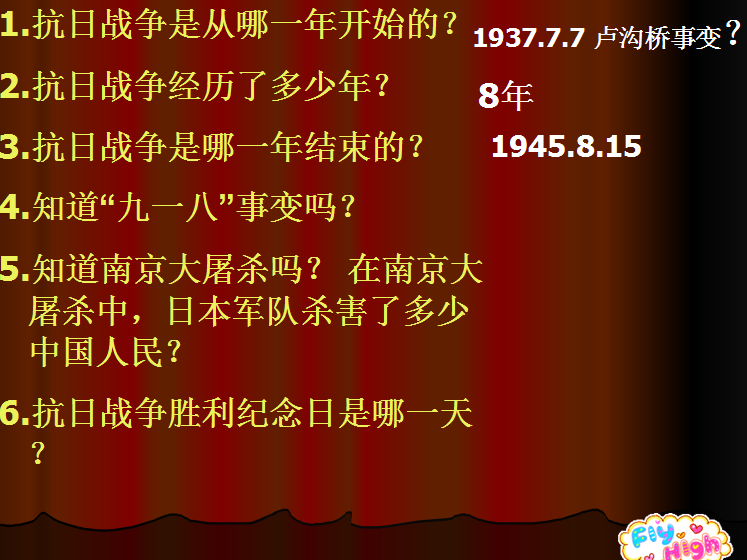 抗战胜利是一个非常重要的、具有纪念意义的事件,2015年9月3号,正好是抗战胜利70周年,那么作为学生的我们,肯定是要开一次主题班会,以此为讨论话题的。