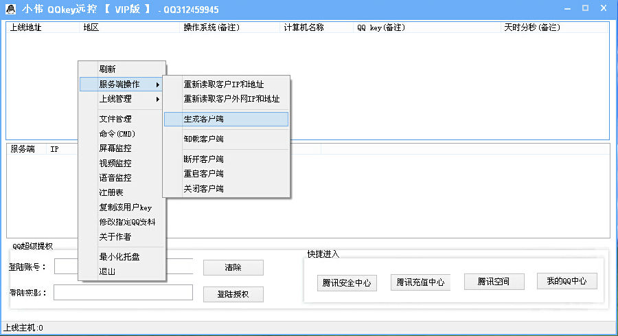 下载解压后,运行该软件,可以生成客户端给需要被远控的电脑使用