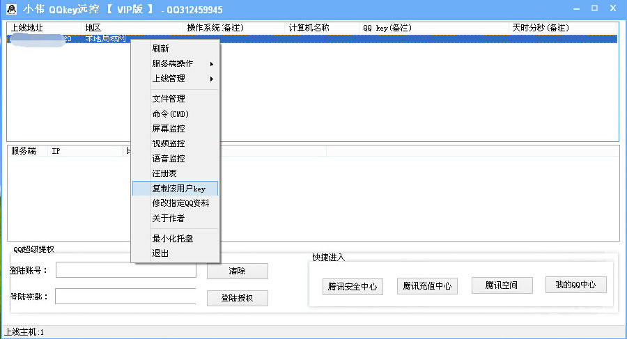 电脑被远控后,可以复制该用户的key,也就是密码,在任何电脑上运行该软件,输入该key即可对该电脑远控