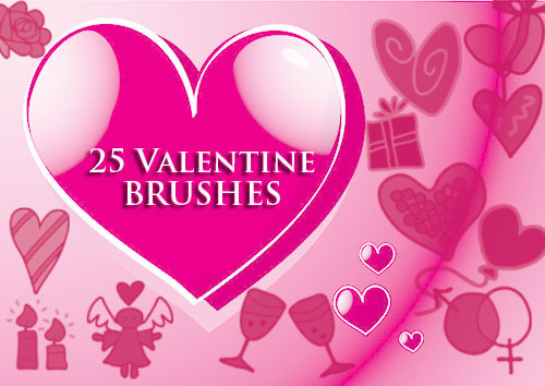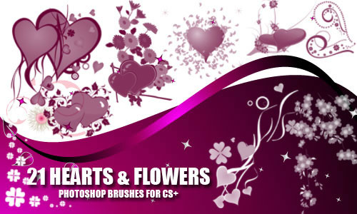 心形和鲜花笔刷,情人节剪贴画笔刷