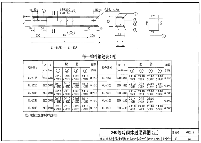 240墙P型多孔砖砌体过梁选用及技术经济指标表
