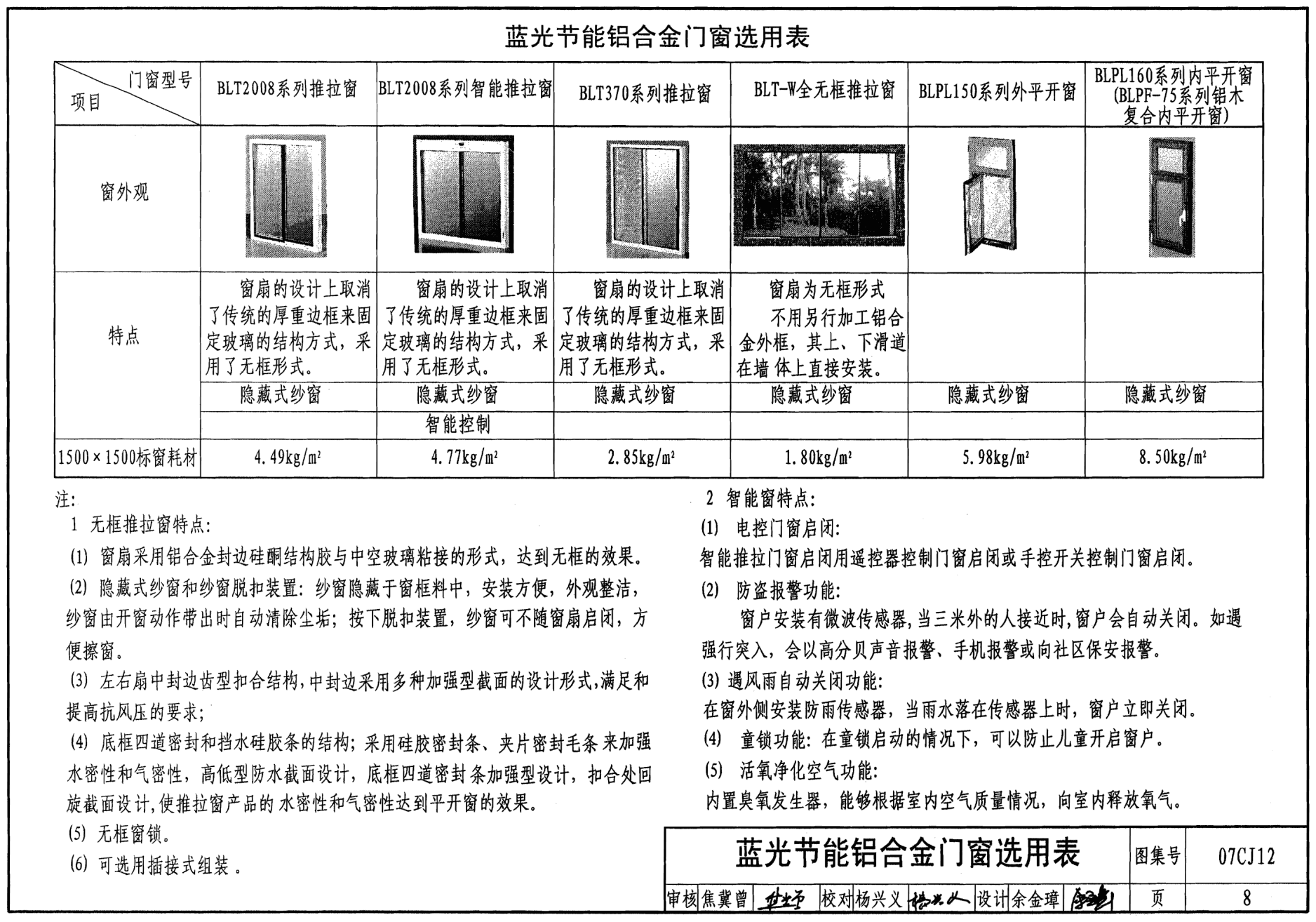 蓝光节能铝合金门窗选用表 8