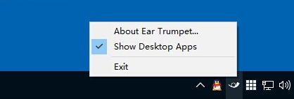 这是一款Win32桌面应用,安装后会在任务栏显示控制图标,他不会替代Win10自带的音量控制器。该工具默认只显示Modern应用,在右键菜单中勾选“Show Desktop Apps”后可显示传统桌面应用。
