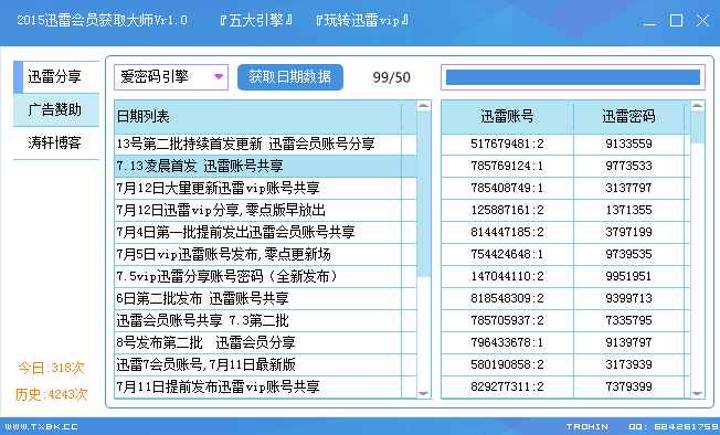 涛轩迅雷会员获取大师(迅雷账号获取软件)是集合网上多个迅雷分享网站的免费迅雷会员获取器软件,有需要的赶紧来东坡下载吧。