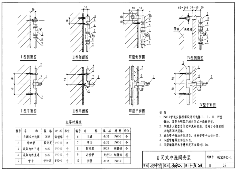 02SS405-1硬聚氯乙烯(PVC-U)给水管安装图集,一般被简称为02ss4051图集,该图集内容包括PVC-U室内给水管道及附件安装以及PVC-U室外埋地管道安装及支墩做法等。本节内容东坡小编为大家整理带来的这份02ss4051图集由57页组成,如果你需要一份02ss4051图集作为参考资料的话,那就赶紧点击本文相应的下载地址进行下载吧!