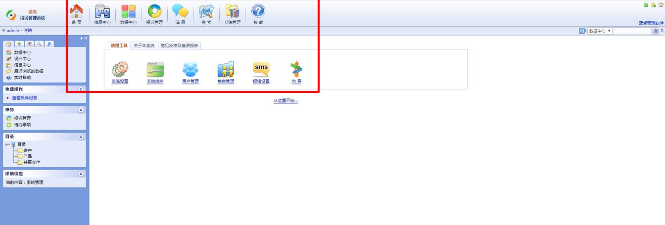蓝点投诉管理系统是基于蓝点通用管理系统而设计的一款投诉管理软件,用于以WEB方式对产品、客户和投诉等进行在线的管理、维护、查询和处理,具有高度的扩展性和可定制性,能方便地通过设计和自定义满足个性化的管理需求,该系统可运行于单机、局域网和互联网上,投诉的登记、处理、审核和回访人员可以随时随地登录系统,按照预设的流程进行投诉的处理和查询,操作简单,界面清爽,功能灵活。