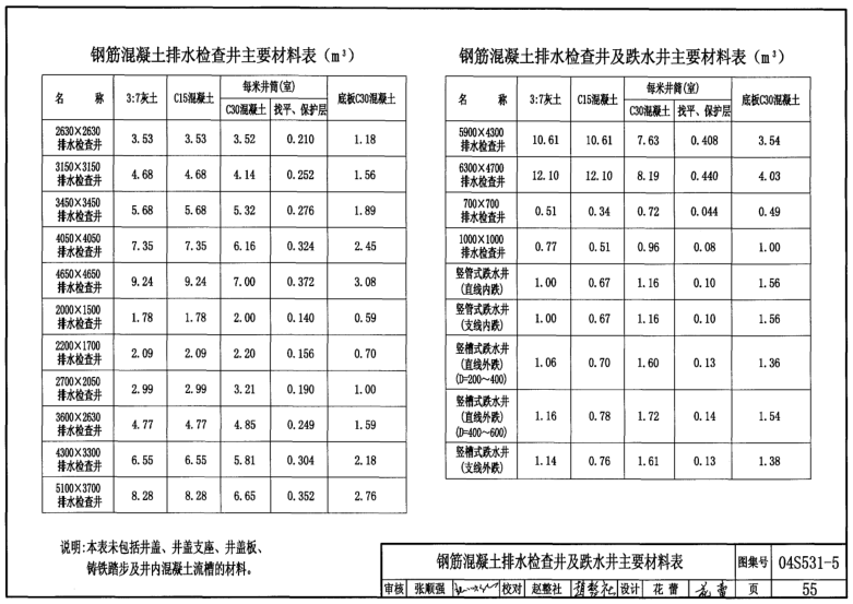 矩形钢筋混凝土排水检查及跌水井主要材料表 55