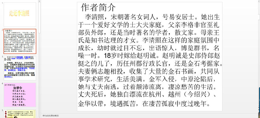这是一份以李清照早期作品为主题的PPT,模板详细的介绍这位女词人的基本资料以及她的一些早期作品。想要进一步了解这位女词人的朋友们可以下载这份PPT。