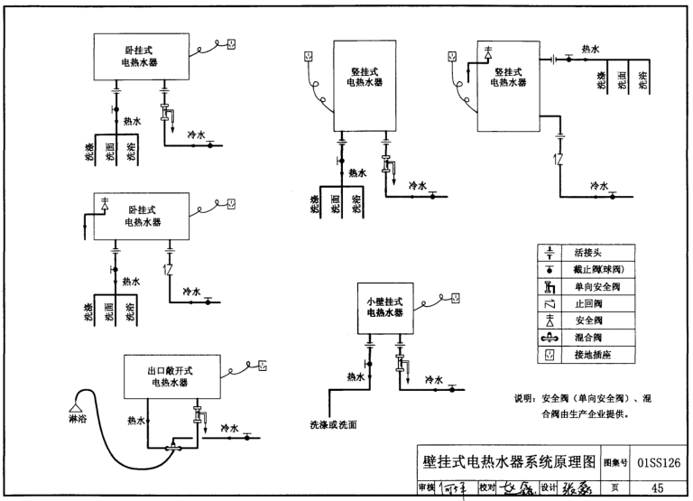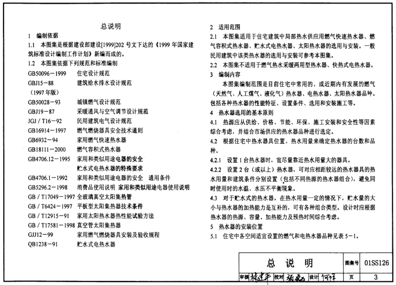 图集适用于小型燃气快速热水器、燃气容积热水器、贮水式电热水器、分户太阳热水器设备的选用及安装