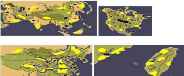 和dolphins's map 04相似,只是科技机场在地图的左边并且只有一个,占领该科技机场,你会拥有无限的电力和不断飞快增长的金钱,还有苏军的磁暴线圈和盟军的防空炮也是绝门武器,攻击范围变的很大,攻击力也增强了不少。