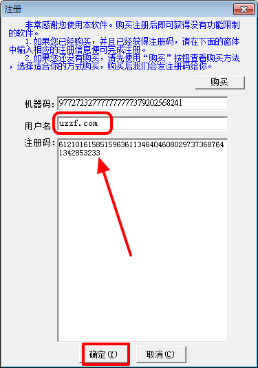 输入你先前设置的用户名,粘贴注册码信息,然后点击【确定】即可完成注册