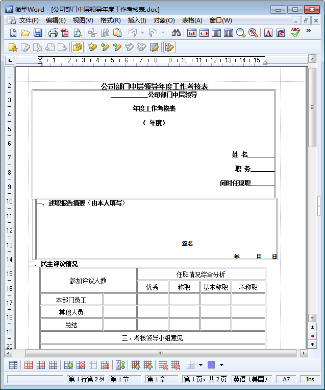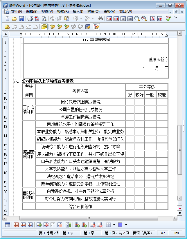 公司有许多的管理岗位,比如基层管理,中层管理和高层管理,通常中层管理指的是一个部门的主要负责人,如办公室主任、供应部长、人力资源部长等,中层管理领导主要负责本部门日常管理工作。本节内容小编为大家整理带来的是一份doc格式word版公司部门中层领导年度工作考核表,以下有关于该考核表的样张,如果你需要这份中层管理人员考核表的话那就快点来下载吧!