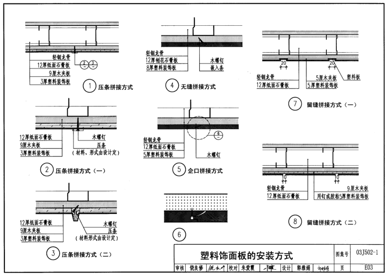 03J502-1内装修-轻钢龙骨内(隔)墙装修及隔断图集,一般被简称为03j5021图集,该图集适用于新建、改建、扩建的民用建筑室内装修中各种墙体上用玻璃、木材、墙纸、墙砖、石材等材料的装修做法及活动隔断、门等构造做法及隔断构造。在本节内容中东坡小编和大家分享的是一份pdf格式高清电子版内容完整无水印的03j5021图集,图集共由147页组成,如果你需要这份图集的话,那就赶紧来下载吧!