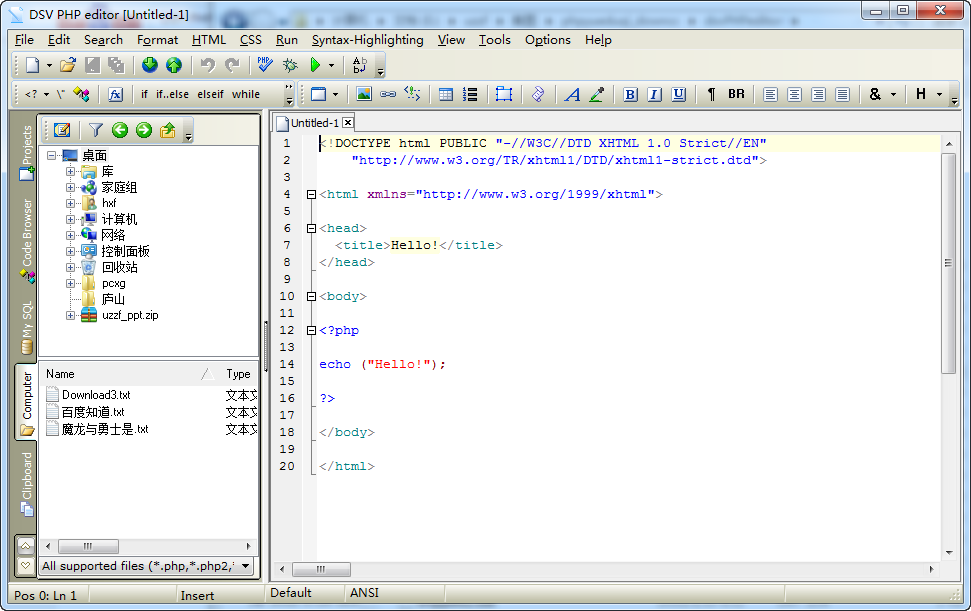 php程序员必备的一款工具——DSV PHP editor,它是个功能超强大的免费php编辑器。它可以创建、编辑和调试PHP脚本、HTML、CSS、Java脚本和SQL页面。东坡带来的是DSV PHP editor最新绿色免费版,有需要的欢迎下载!