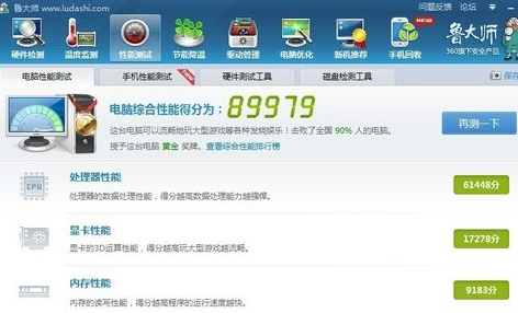 检测完成之后出显示电脑的综合性能得分,我的电脑就可以流畅完大型游戏。得分也差不多9万。