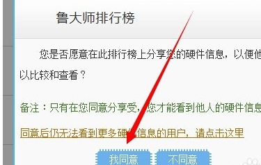 同意分享自己使用鲁大师的检测信息。因为只有同意才能查看他人的分享。