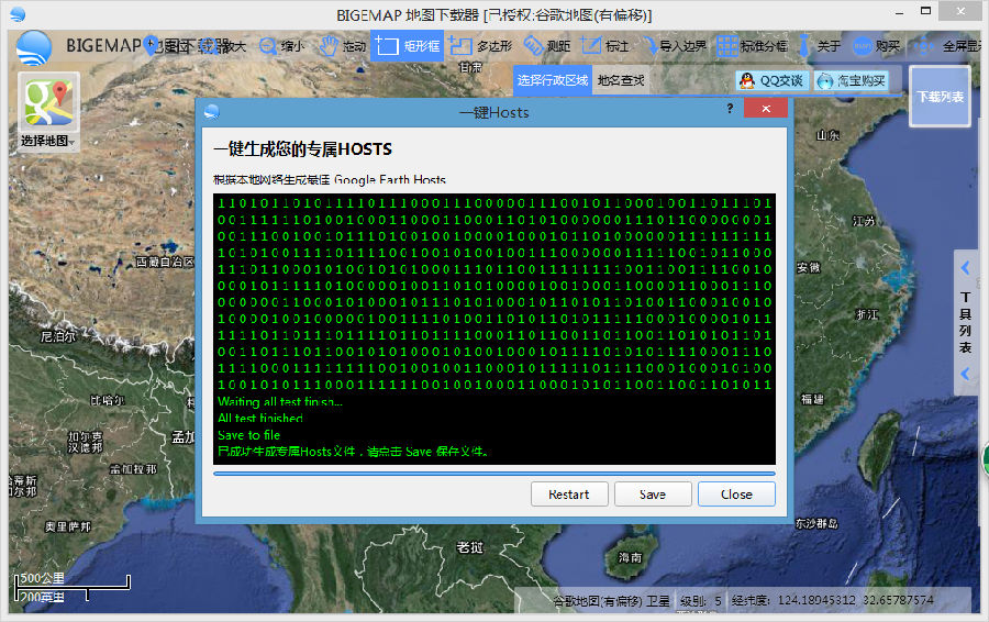Google Earth Hosts一键生成器是一款功能强大的谷歌地球hosts生成软件,软件能够一键hosts生成工具,绝对有效,本hosts主要用于访问谷歌地球。独家支持国外google eart,无偏移的BIGEMAP谷歌卫星地图下载器是由大地图数据服务有限公司研发的一套集地图下载,地图浏览、数据编辑类地理信息系统软件。
