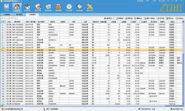 1、入库通知:对将要入库的物品资料进行操作包括:查询、新增、修改、删除、确认入库、打印等功能