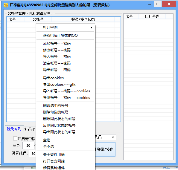 QQ空间批量隐藏别人的访问软件可批量隐藏别人来访问自己空间留下的痕迹软件,防止别人抓取自己的空间访客!