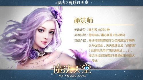 秘术师:群攻、远程职业,魔法学院的毁灭者,柔弱的外表下,拥有掌控诸界元素的强大魔能,没有人能够在她的法术轰击下靠近她;