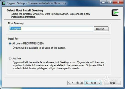 4、指定安装目录,下面的单选框默认即可,【下一步】