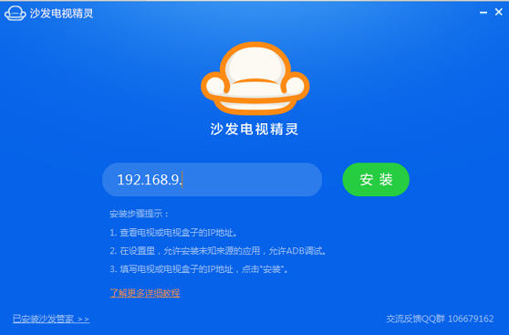 沙发电视精灵电脑版是针对安卓机顶盒、智能电视的PC管理工具,它可以为您的设备安装沙发管家;