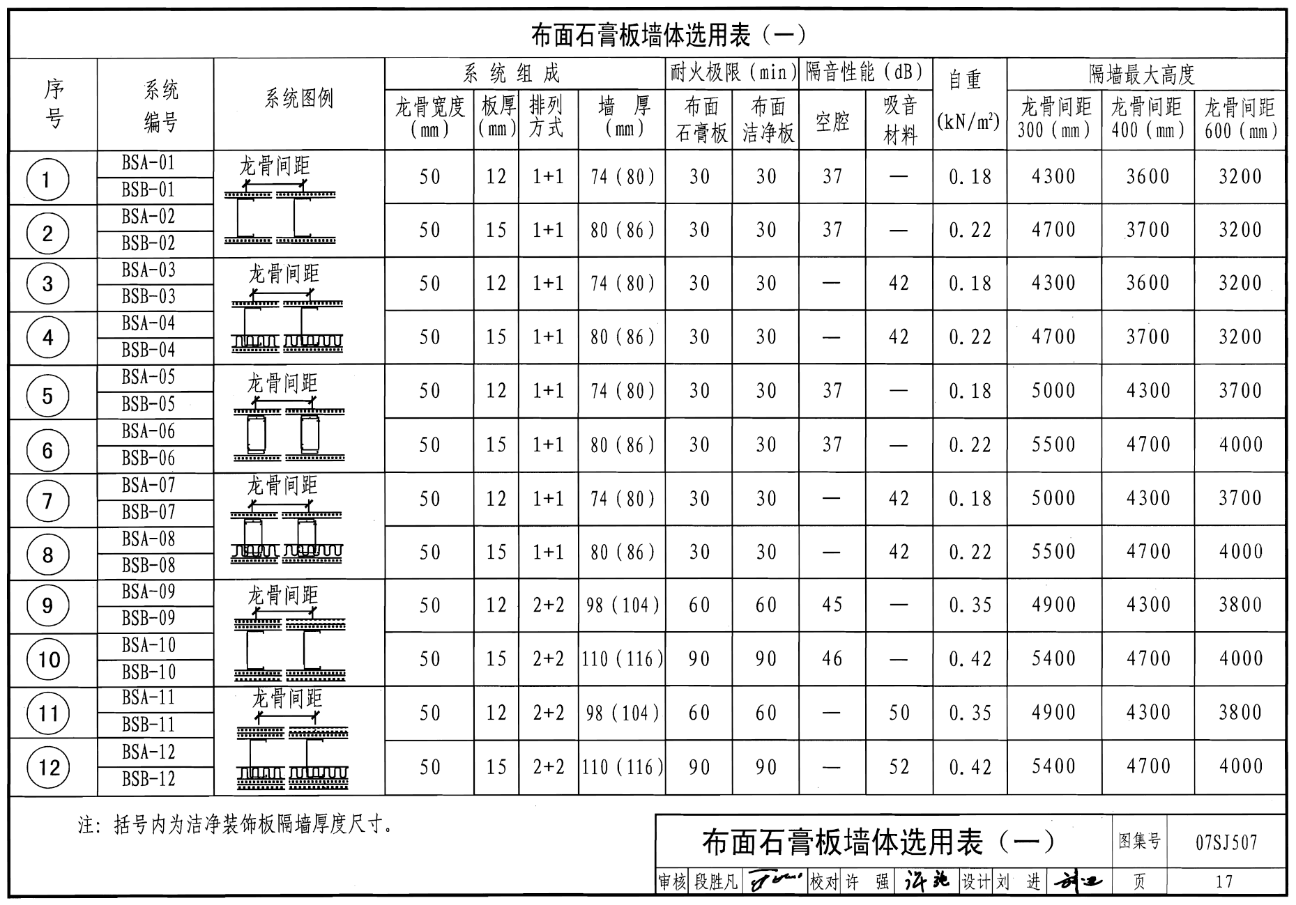 布面石膏板墙体选用表(一)17